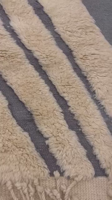 A beautiful textured neutral rug made with the highest quality wool in a very useable size. Features a high pile cream wool design on a soft black flatweave.